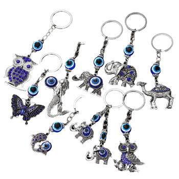 Phong cách dân tộc kim loại Keyring Retro khoan Elephant Owl Mặt dây chuyền kim loại kẽm hợp kim Thổ Nhĩ Kỳ màu xanh ác mắt đồng xu chủ Keychain